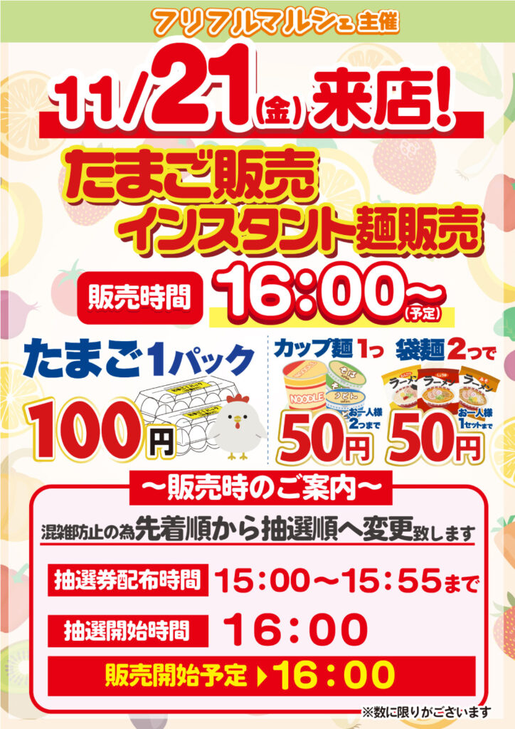 【11月21日(木)】🥚🍜 たまご&カップ麺販売会